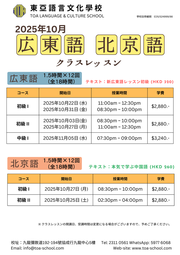 暑さも台風も過ぎ去り勉強に集中できる時期になりました! このタイミングでぜひ広東語・北京語の学習を始めてみませんか。 ク...