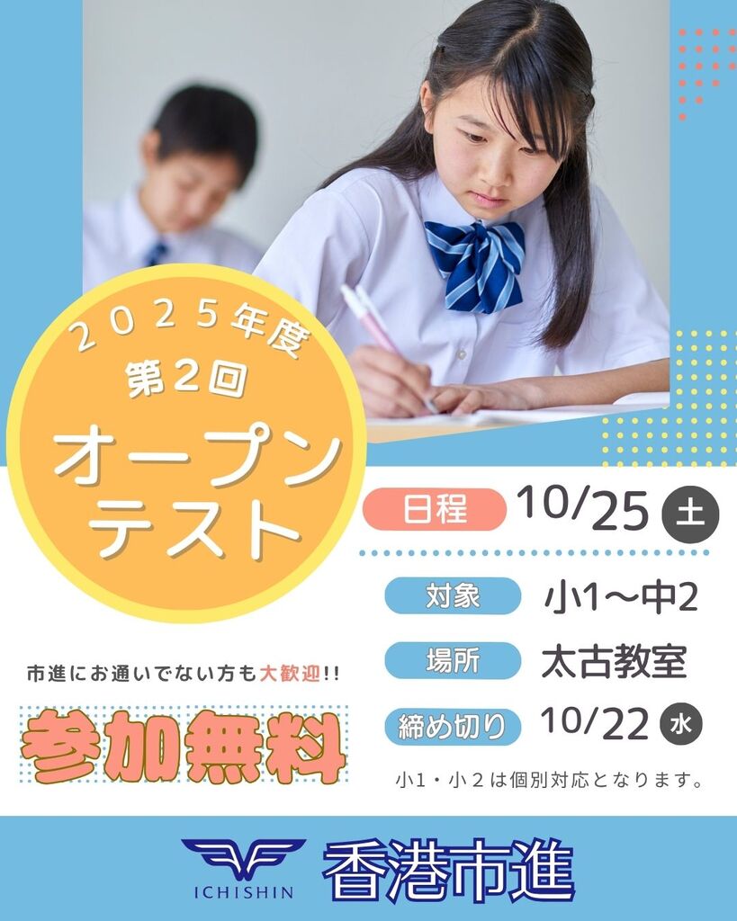 今の自分の実力を正確に把握するチャンス! 日本の市進で実施しているテストを香港で受けてみませんか。 今後の学習計画に役立...